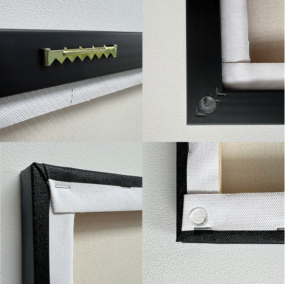 Every Pattern & Pixel canvas is crafted with the details that matter. Pre-installed sawtooth hardware and rubber bumpers mean it's ready to hang straight out of the box, sitting flush and perfectly level against your wall. Our floater frames are crafted from solid wood with precision-mitred corners, while gallery wrap canvases are pulled tight around thick wooden stretcher bars for a clean, polished finish from every angle.
